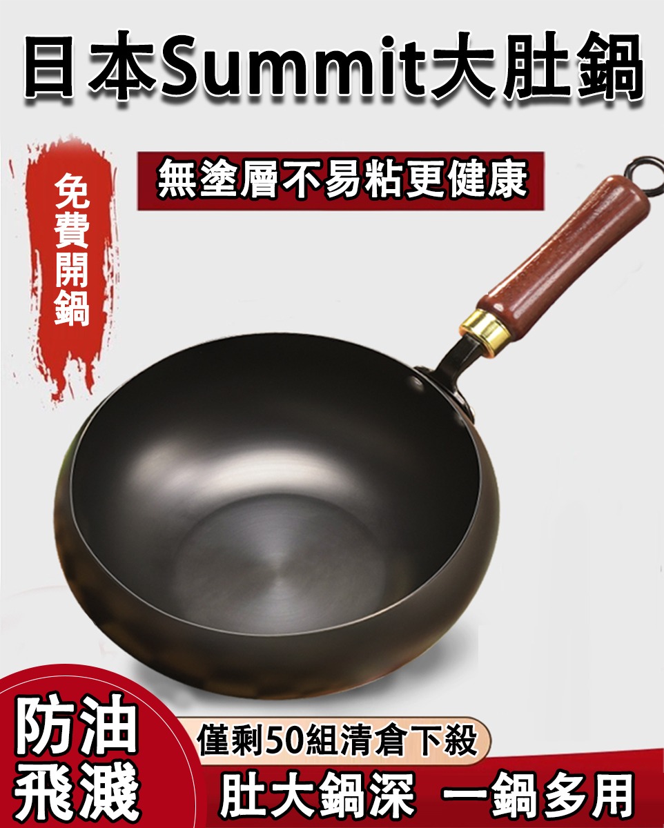 15分鐘前日本Summit無塗層大肚不粘鍋,肚大鍋深,油星不逃,無塗層物理不粘更健康,僅剩50組限時限量清倉下殺。 - 【僅限今日!】Summit炒鍋28cm1件(送鍋蓋+鐵鏟)-NT$ 1480